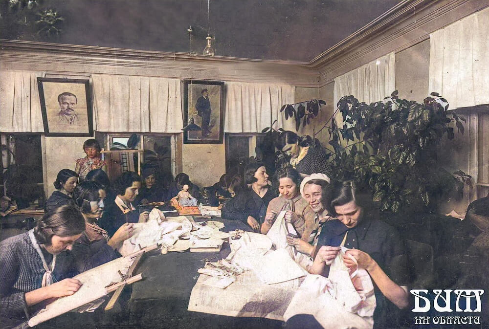 Занятия в кружке шитья жен ИТР на заводе имени М.И.Калинина 1928г.