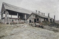 Типичное строение производственного назначения (корпус №1). Длинное двухэтажное строение - кожевня, где происходила варка клея в полуподвальном помещении с маленькими остекленными окнами. Четырехгранные опоры из красного кирпича поддерживают двускатную крышу, под которой находятся горизонтальные рамки для просушивания клещевины. Рядом покосившееся деревянное строение (корпус №2), где происходила резка галерти. Проемы в стенах не остеклены и не закрыты для лучшей вентиляции. Автор неизвестен.