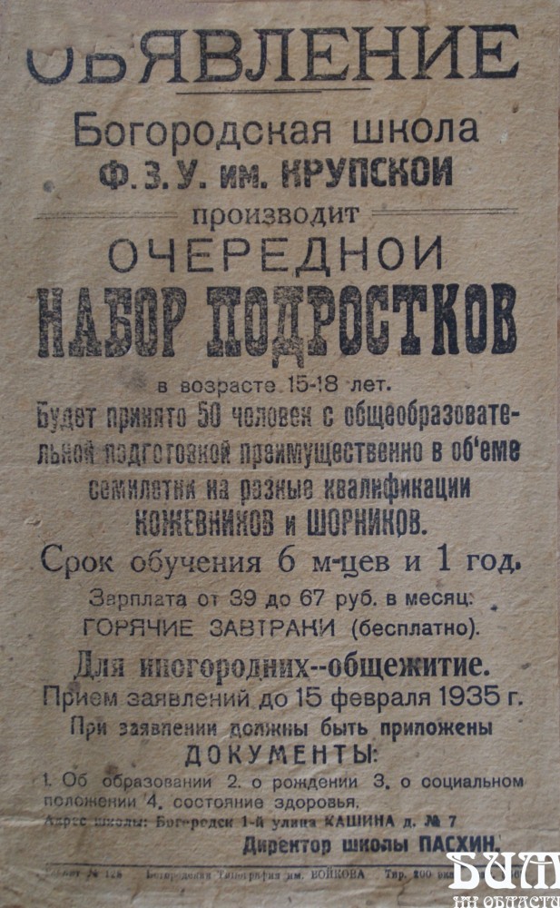 Совершенно верно, Stanislav, это Кашина 7, хотя здание претерпело некоторые изменения(появились ворота и лестница), но в целом осталось узнаваемым. Что касается того что было в этом здании в советский период, то располагался там не совсем профилакторий, а школа-завод им. Н. Крупской о чем свидетельствует объявление о наборе учеников. Внизу указан адрес школы, а в доме №9 возможно было ??? общежитие. Это ставит под сомнение фото, опубликованное ранее Установка трубы котельной, дело в том, что на паспарту того фото от руки сделана запись "Котельная во дворе школы-завода им Н.К. Крупской по ул.Ленина, 152." Возможно запись сделана позднее, чем само фото и не точно указано расположение школы, а вот в объявлении указан фактический её адрес. Но тогда за тем зданием не должно быть никаких домов, а должно быть Кабацкое озеро. Непонятно