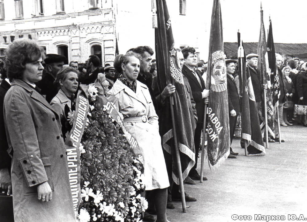Колонна завода "Искож" на шествии в память о большевиках, погибших во время контрреволюционного мятежа в селе Богородском 24.05.1918 г.