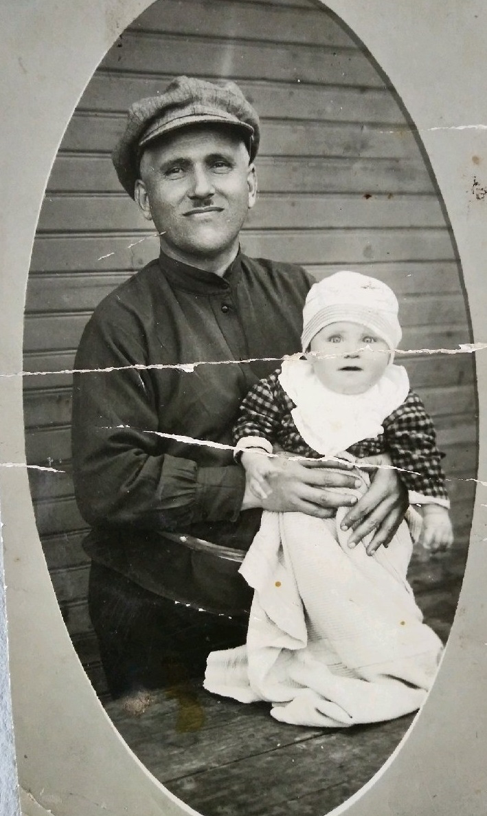 Мой прадед, Нахгальцев Николай Васильевич, с дочерью Ниной или сыном Львом (не установлено), 1923 или 1927 год.