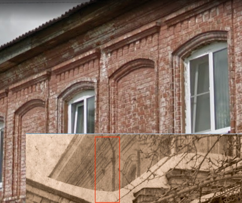 Характерный своды окон второго этажа со "ступенчатыми выступами" совпадают.