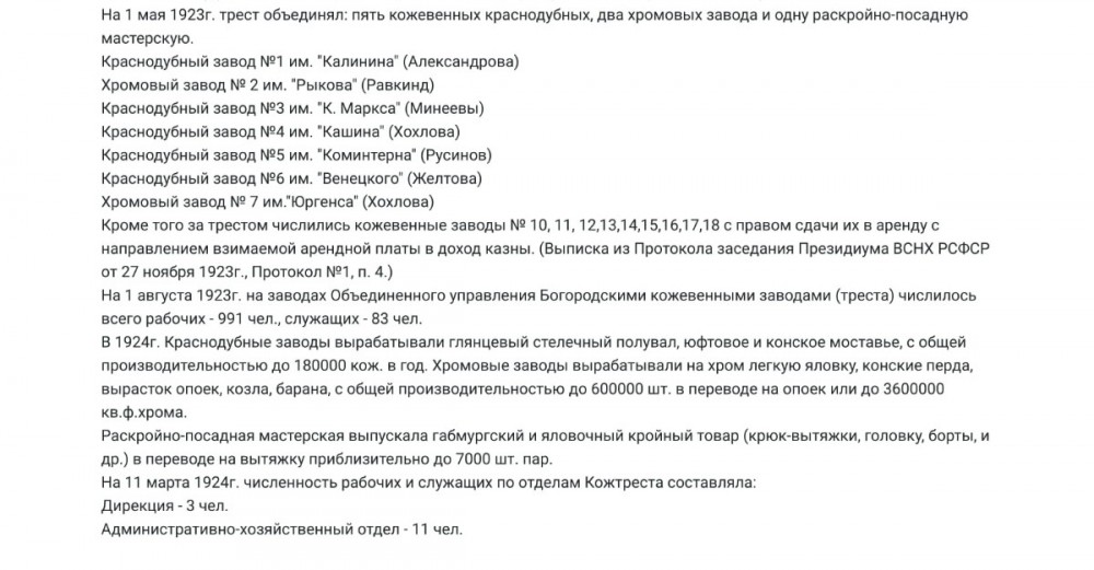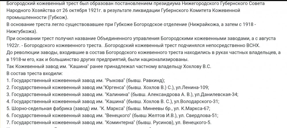 В то время,понятие небольшой "завод" допускало расположение производства в любом подходящем для этого по размерам доме с участком. Преимущественно,подобные заводы были благополучно отжаты у их старых владельцев,которые,в лучшем случае продолжали там трудиться,в худшем—расстрел,что имело место быть и в Богородске.