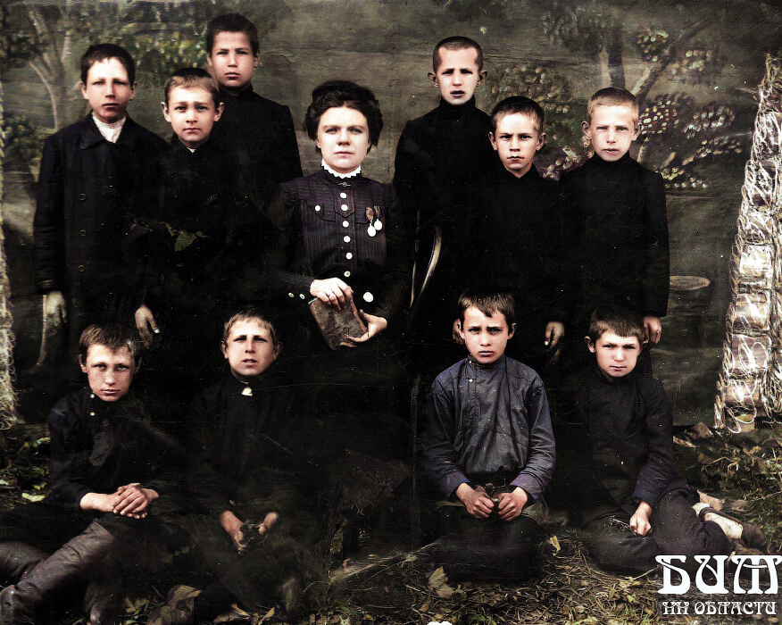 Учительница Сперанская М.М. с учениками, с. Богородское, 1914г.