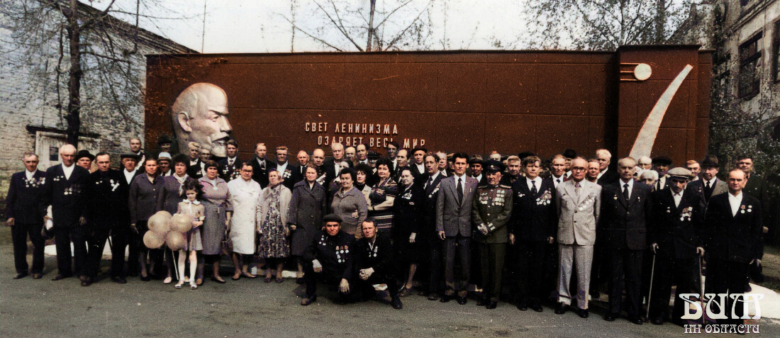 Возложение цветов к памятнику погибших работников завода "Искож" 9 мая 1983г. Фото Марков Ю.А.