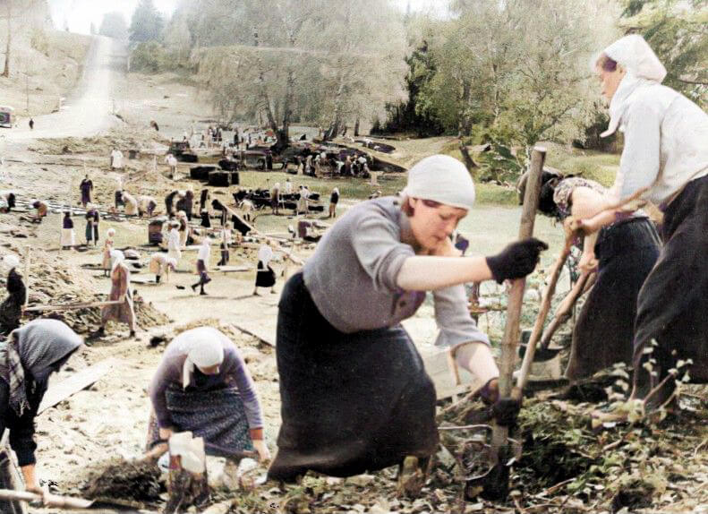 Кудряшкинские колхозники на строительстве дороги в селении Теряево Богородского района