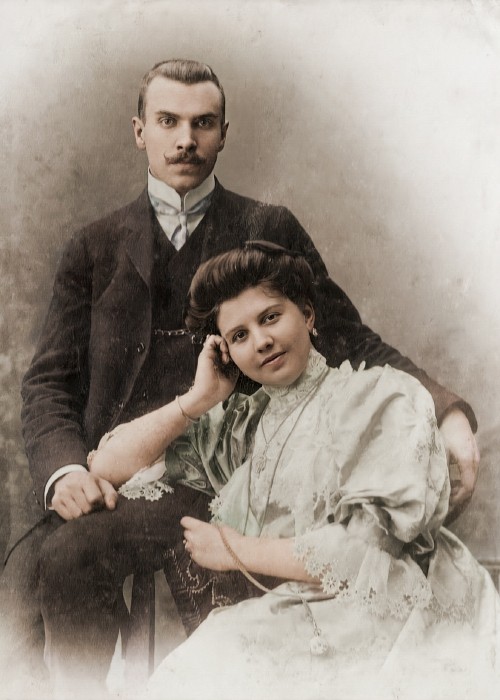 Федор Алексеевич и Евгения Ивановна Желтовы в день бракосочетания сына своего