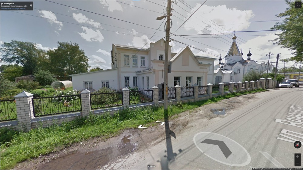 Да, так и есть, если встать лицом к зданию, слева хлебзавод справа школа. А ограда на заборе, подозреваю церковная.