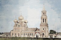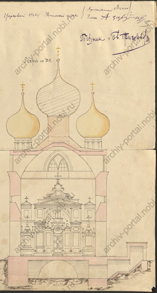 Через нейросеть прогнал—получилось что-то вроде посвящения Александру2. Двойка хорошо прослеживается и годы строительства совпадают. Возможно,в пользу этой версии говорит и то,что позднее,перед храмовым комплексом был установлен памятник упомянутому царю,который был более "щедрым" даром народа,чем надпись.