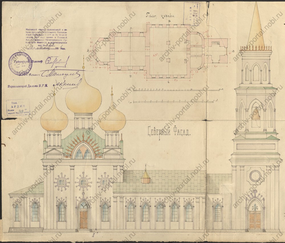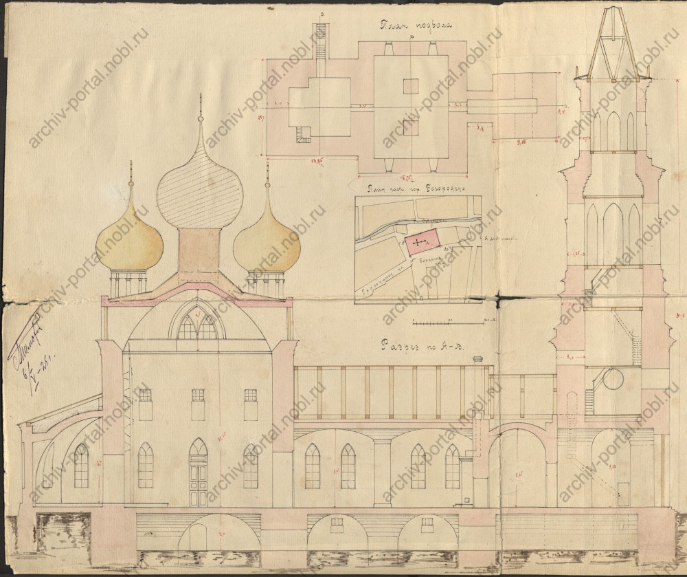 План церкви 1926 год. Усыпальница Шереметевых имела два входа: основной — снаружи, и дополнительный — из алтарной части храма. Помещение высотой около 2,6 метра было перекрыто покатыми сводами.