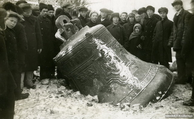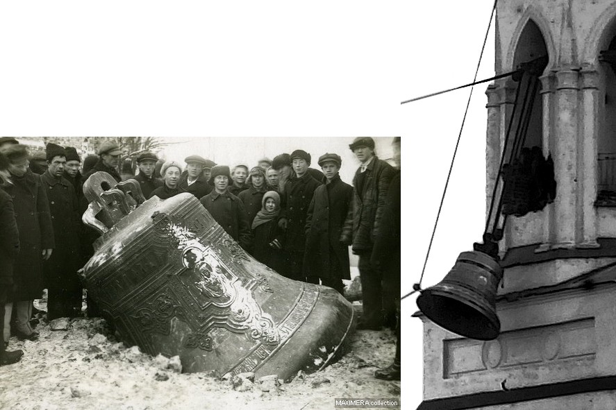Колокола то разные. Думаю на этом фото колокол не с Успенской церкви. На фото где его снимают или поднимают https://bgforum.ru/photo_guriev/5196/ внизу колокола заметен волнистый рисунок, а на этом фото его нет.