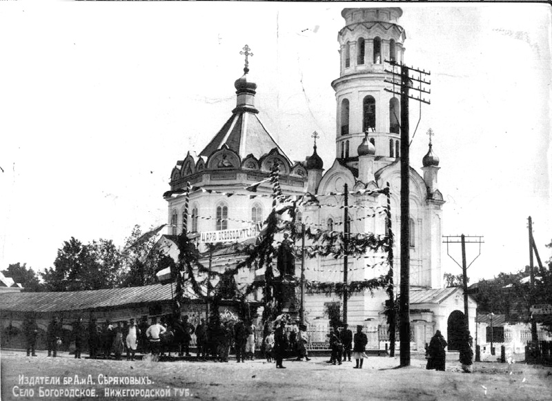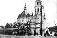 Откуда такие выводы? Сквер сейчас большой. В прошлом он был не на много меньше. См. фото. А церковь была не очень большой, чуть больше 22 метров в длину. На месте шатровой части церкви сейчас дорога к почте и несколько метров территории сквера. Как раз то место, где нет крестов! Указывая рукой в сторону сквера "там была церковь", теоретически верно. Исторически - не совсем. Церковь занимала малую часть нынешнего сквера. Этот вывод неоднократно печатался на форуме на основе анализа других фото.
