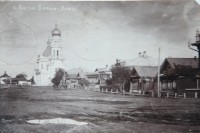Справа от церкви крыша кирпичного двухэтажного дома, где-то там сейчас администрация.
