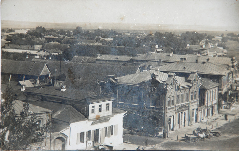 Слева внизу ювелирный магазин, повозки стоят у банка.