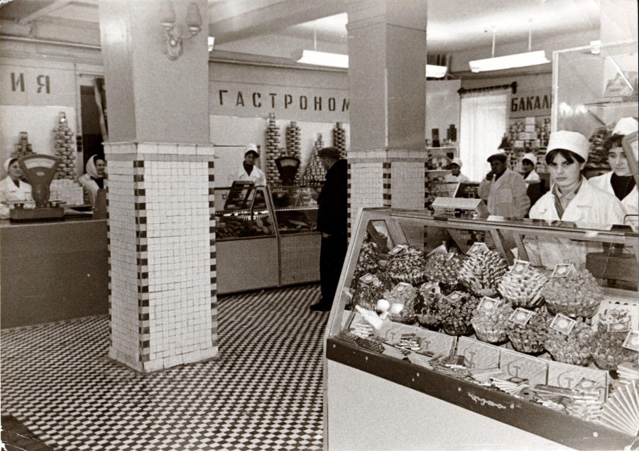 Журавлев, а в каком году вы родились? Вы вообще этот магазин помните? А вот я ходил сюда часто и могу точно сказать, что фото начала-середины 70-х, потому что в конце тех же самых годов шоколадные конфеты, как и сами плитки с витрин исчезли, колбасу лишь время от времени "выбрасывали" и за ней приходилось стоять длинную очередь в несколько зигзагов, равно и за маслом (сам стоял не единожды), но с консервами, конечно, был полный порядок. Кстати, Журавлев, вы хоть представляете советские очереди за продуктами? Я бы желал вам постоять хоть в одной из них. Интересно, кого бы вы тогда блядями костерили...