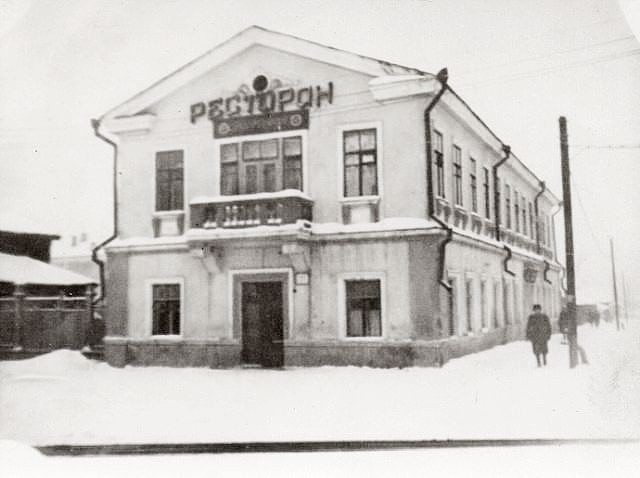 Он стоял на центральной площади. Помню в 1976 г. идём мы с Васей Язьковым (царствие ему .....супер был человек !) с гулянки, в хлам. У нас авоська с пустыми бутылками. Заходим в магазин - назывался "подрестораном". Меняем пустые бутылки (без очереди, а чо нам бабушки скажут!?) на одну, но целую портвейна. Выходим и под фонарём (на фото его нет) выпиваем из "горла"))).........Вася говорит-"Мне на репетитицию в клуб з-да Юргенса (он на гитаре лабал)" .....нам по пути.......доходим, в проходной не пускают.....тогда мы через забор - подсаживаю ......слышу падает на той стороне, всё О.К.......утром прихожу в технарь, у Васи видуха как у шахтёра после смены))).......спрашываю- "что случилось ?"..........я говорит "упал в какой-то угольник - там и проспал до утра" ))))))))