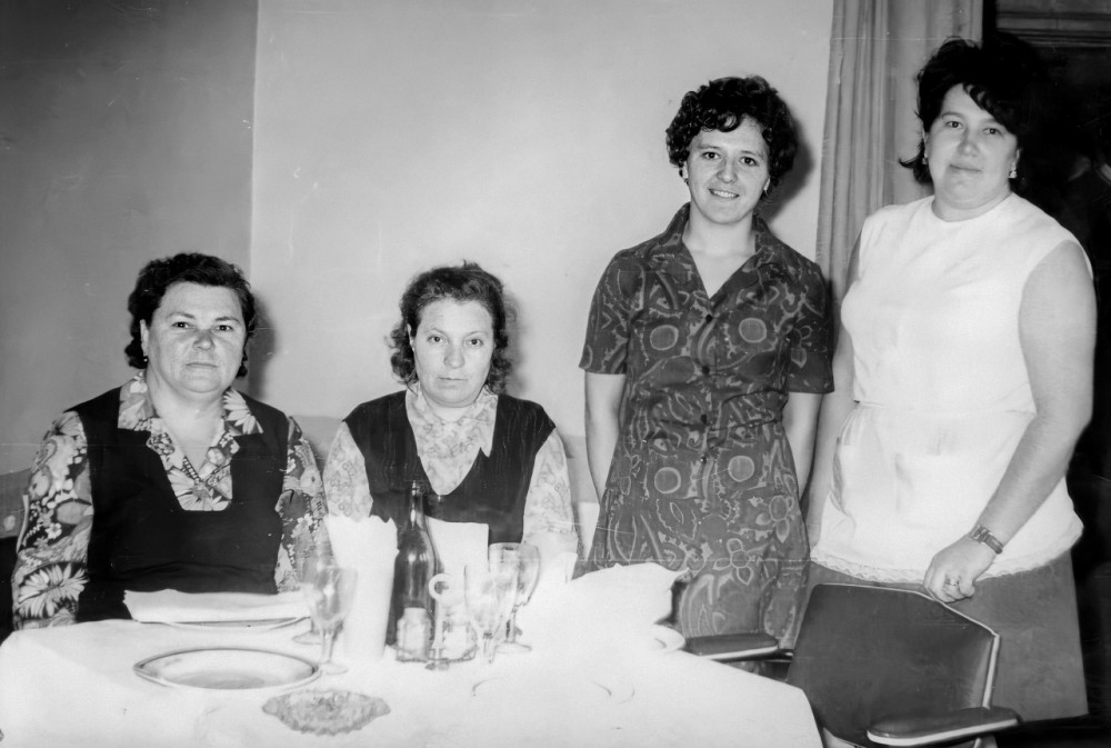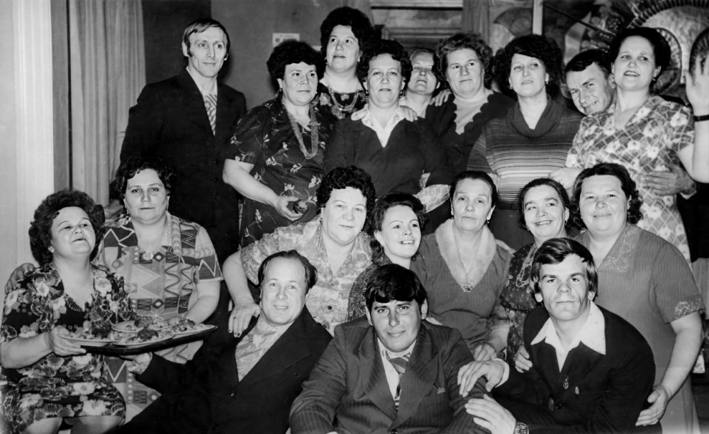 Здесь юбилей у кого то из работников, фамилии всех не помню, но кого знаю Верхний ряд: ?, Вера Матвеева, Инна Корнева, ? , ?, ?, Нина Колесова, ?, Вера Кабалова Нижний ряд: Софья Сухова, ?, ?, ?, Владимир Иванов, ?, Александра Пчелина, Галина Серкова, ?, ?.