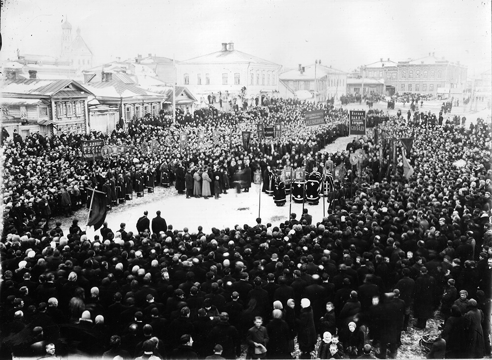 На самом деле на фото – День памяти погибших за свободу, впервые отмечавшийся в Богородском 15 марта 1917 года. Об этом подробно рассказывается в одном из материалов книги "Без прошлого нет настоящего: сборник историко-краеведческих трудов, посвященных памяти А.А. Бондаря (1952 – 2012) : [Краевед Березополья] ; [Под ред. А.В. Любавина, С.В. Петряева, А.А. Сорокина]. – Богородск [Нижегор. обл.] : [Печатный дом "Вариант"], 2015". ISBN 978-5-9907242-0-4