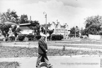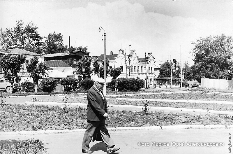 Да и то лишь вдоль дороги. Деревьев по скверу вдоль тротуара уже нет. Отсюда можно заключить, что снимок сделан не ранее 1986 года. Примерно в это время произошла "серьезная" вырубка сквера, из-за чего тогдашнего "градоначальника" прозвали лесорубом. В нынешнем году дело отцов было достойно завершено.