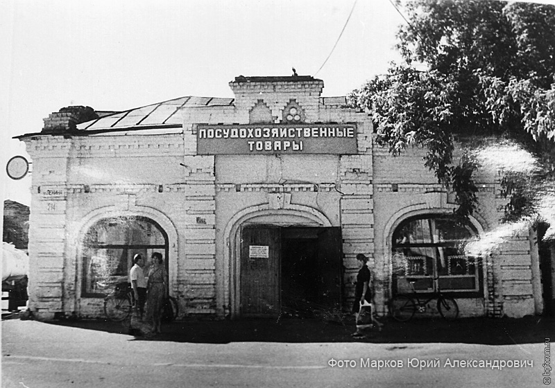 Нет. Все правильно на фотографии. Раньше все здание занимали 2 магазина: тот, что смотрел на ул. Ленина, назывался "посудохозяйственный", и внутри он занимал площади более половины нынешнего "спара". Тот, что смотрел на универмаг. назывался "москательные товары", где продавались товары бытовой химии. Когда-то в программе "Что? Где? Когда?" был вопрос-фотография с вывеской "Москательные товары" и знатокам предлагалось угадать, что продается в этом магазине. Знатоки проиграли.