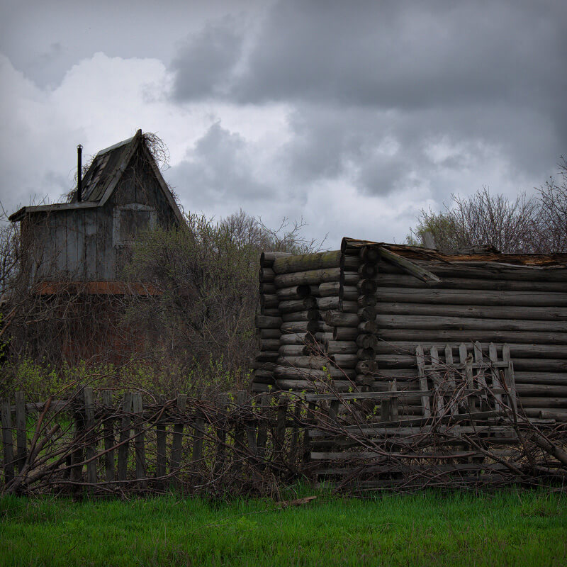 А еще лучше не петуха и не ворону, а фигуру пожилого человека спиной к объективу. В каком-нибудь длинном пальто. И чтобы стоял у забора. А если без фантазий, то кадр хороший - "говорящий".