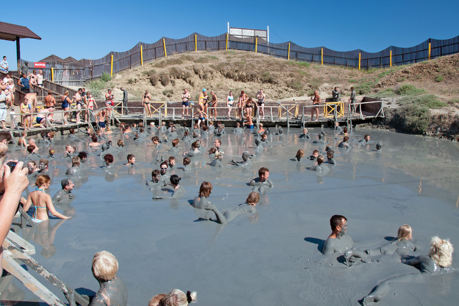 Вулкан Тиздар с голубой лечебной грязью, как говорят