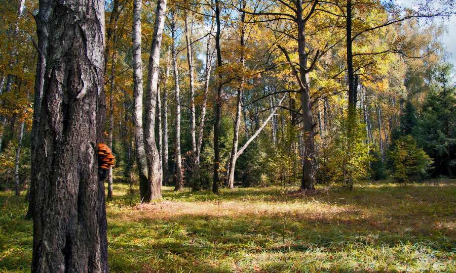 грибы на дереве, а за ними ОСЕНЬ. хорошо, что не ПОД ГРИБАМИ..но тогда бы был совсем другой пейзаж..с единорогами, гномами и феями.