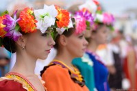 фото , следующее после той, где несут плакат ,,Канашский район Чувашия,, , костюмы вылито и100нские, плакат народности не видно, подозреваю, что марийцы.