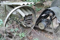 Это колесо крутили вручную, спицы колеса снабжены режущими ножами. Вторая фотка - "коробка скоростей" этого агрегата.