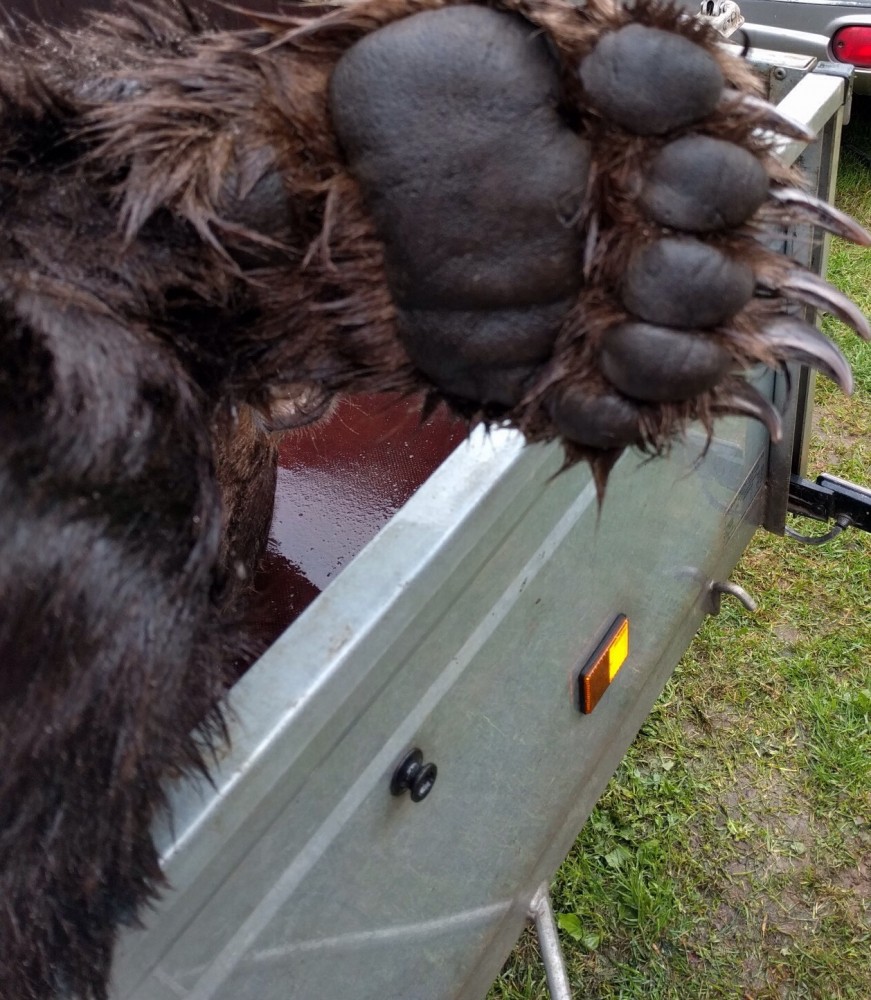 Друган вчера нажаловался, что за медведя получил штраф 4500 евро, потому что какой-то недочет произошел с закрытием лицензии. Теперь жалеет, что засветил добычу, сдал мясо (270 кг) и шкуру в охотобщество .