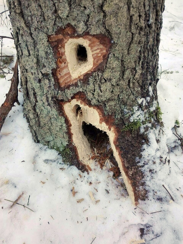 Вчера у дома нашёл ещё один ,,ресторан,, дятла , и когда только он нажрать столько успел!