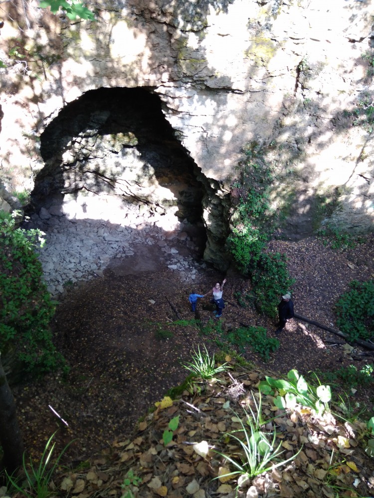 Станислав, предлагаю скататься в эти выходные туда. Я думаю и Буяновы смогут выделить на это время. Если поехать часов в 7 утра, то после обеда уже домой можно вернуться. Сколько раз в Ичалковском бору не бываю, а две или три пещеры либо просто не нахожу, либо времени нет. Надо закачать на телефон нормальную программу чтоб координаты в любом виде воспринимала. в прошлом году из-за того что яндекс карты не понимали координат для обычного навигатора так и не нашли 2 пещеры. Размеры пещер и оврагов впечатляют. Еще-бы по пути заехать в Борнуковскую пещеру. Вот еще снимочек одной из больших пещер.