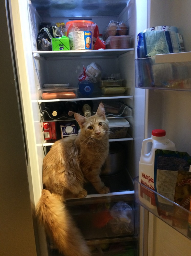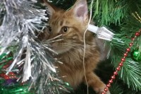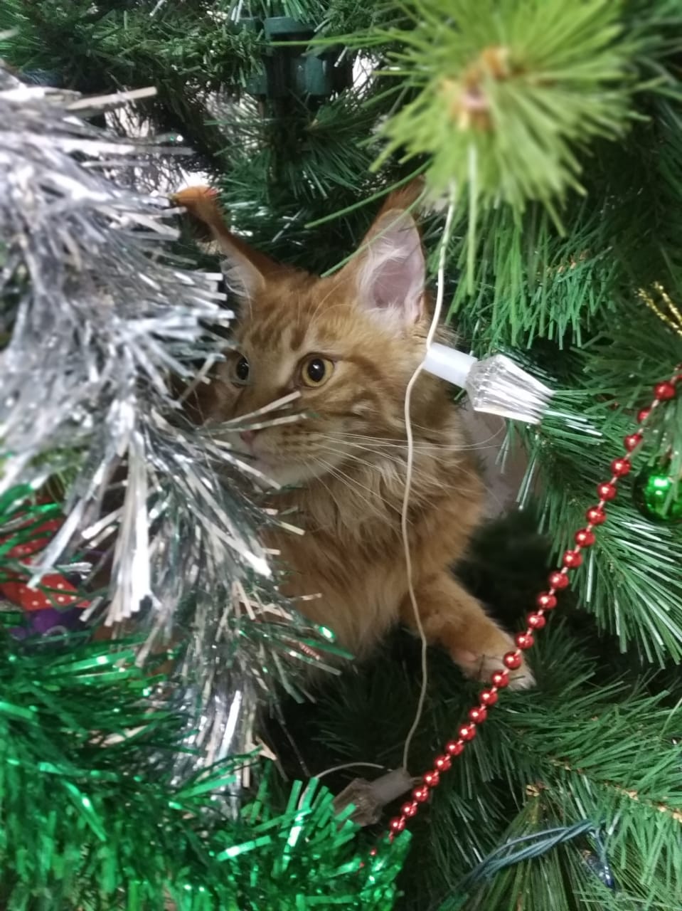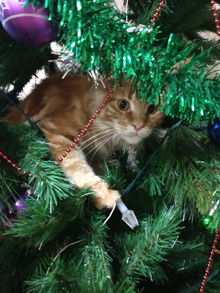 Наш ,,ку-кунь,, тоже рыжий, но к елке равнодушен, любимое место - холодильник, откроет, вытолкнет с полки плошки, кастрюли с щами-борщами и гордо укладывается вверх пузом. И абсолютно не понимает, за что на него орут и гонят вон.