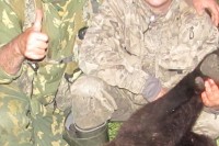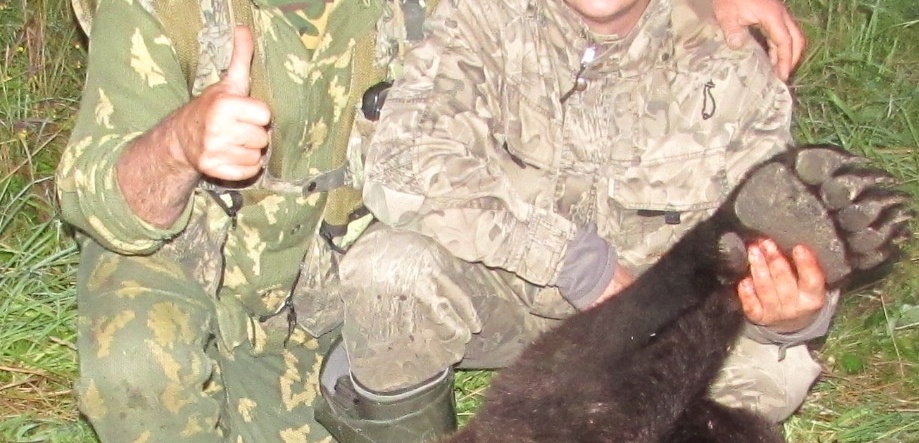 Охотники добыли на площади 10х10 км семь медведей, этого возле моей фазенды, небольшой, вес 240 кг.
