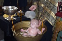 Кричат они от столпотворения, всеобщего психоза и дискомфорта. Родители норовят выбрать моднявую церковь, побогаче, ну и т.п., дёргаются зашуганно, выслушивая всевозможные чё низя и чё зя от всякого шепчащего-проходящего. Когда я был на крестинах в Пюхтинском монастыре, там народищу в крестильне было , как в метро поутру на Ярославском вокзале, орали все дети задолго до крещения, как говорится ещё не "родимши заново". Крестины на фото проходили в небольшой церкви, в торжественно-спокойной обстановке, без духоты и холода. Не плакал никто. Пороюсь потом по дискам, где-то ещё фотка была с этим же малышом.