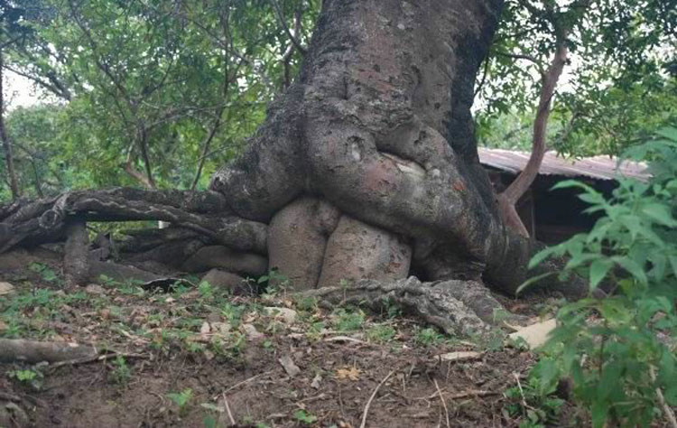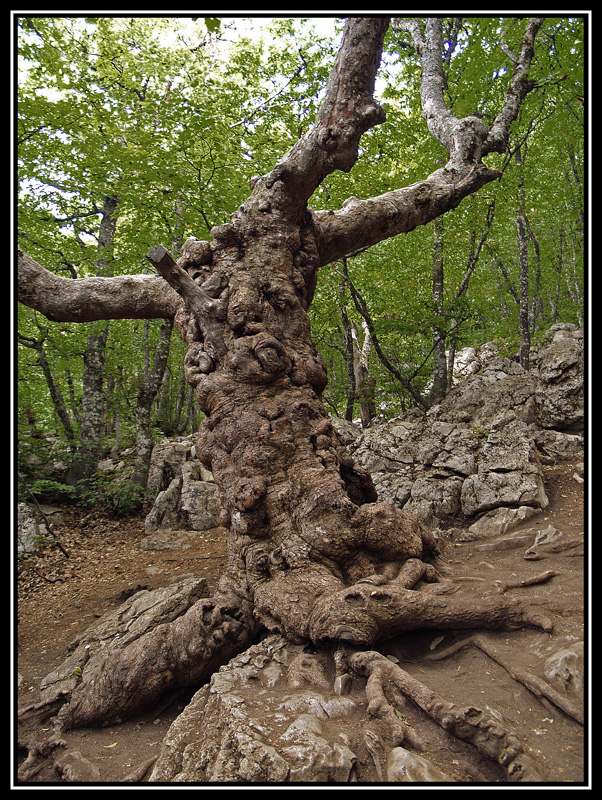 Начну первой. Справа, на уровне ствола соседнего дерева, видна Баба Яга. Даже бородавка на носу!