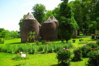 Вот не помню, в каком году, но я видел, как одну из "шишек" укладывали, ещё одна стояла уже готовая. Внутри там для связки жердина с перекрестьями есть. По монастырю ходишь с удовольствием, отдыхая душой. Если доводится проезжать неподалёку, всегда заруливаю туда просто побродить. Внутри много зелени, цветов, старых ухоженных построек. Знаю, что многие приезжают в монастырь просто ради волонтёрства. Часто туристы за кормёжку и ночлег делают какие-нибудь нехитрые работы.