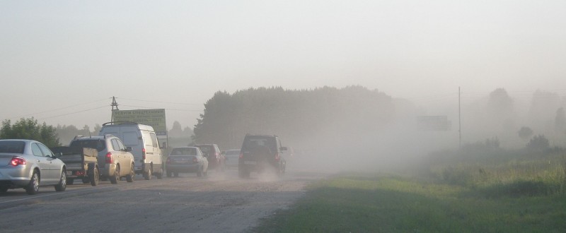 Именно в пятницу вечером в районе 19.30 вечера я продвигалась из Нижнего в Богородск и наблюдала это всё лично. Водитель газели еще в Щербинках предупредил- проезд 50р и сами увидите почему! Ехали мы по пыльной обочине, обгоняя всех справа. Пришлось закрыть рот и нос влажными салфетками и зажмурить глаза, так как весь салон заполнился пылью....ужас. Бабушки кашляли всю дорогу, и расплакался ребенок