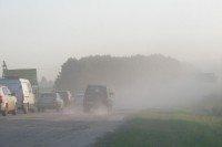 Ехали мы по пыльной обочине, обгоняя всех справа. Пришлось закрыть рот и нос влажными салфетками и зажмурить глаза, так как весь салон заполнился пылью....ужас. Бабушки кашляли всю дорогу, и расплакался ребенок