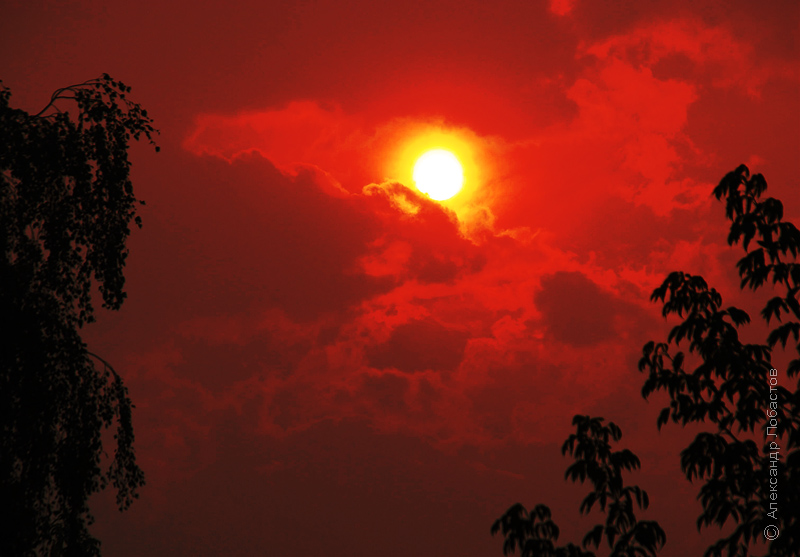 солнце в дыму кажется красным...луна ночью красная.....welcome to hell