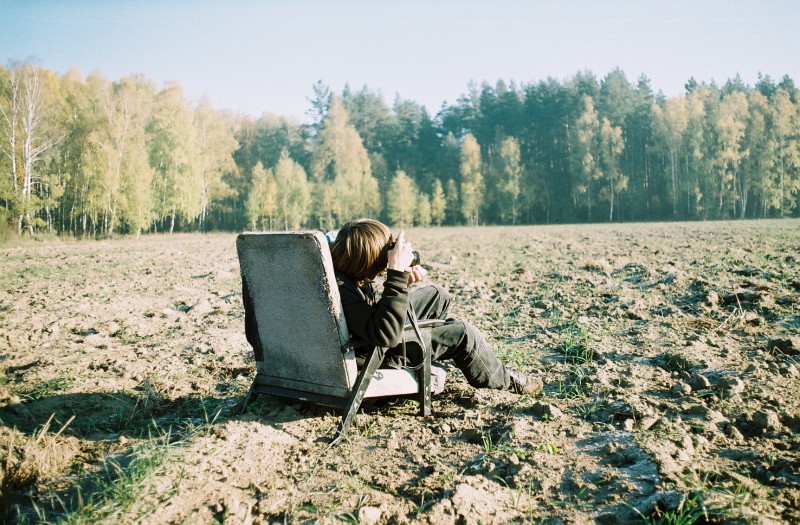 Саш ну например так, что бы человек с Зенитом сидел лицом в поле и расположен в точке золотого сечения и крайне желательно ничего больше в кадре. Масштаб человека в кресле можно даже сделать по меньше или напротив более значимой фигурой в кадре. Но однозначно кресло в поле это здорово!