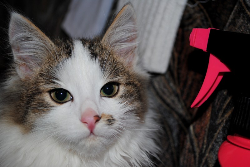 От природы, а может от того что как то пытался понюхать огонь, усы левые опалены (если присмотреться)