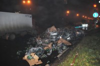Такое наблюдалось сегодня утром, пиво валяется шириной на всю полосу, издалека показалось что авария, машина всмятку. Потом показалось, что мусор валяется, ближе прояснилось, что это гора пива. Доблестные сотрудники ДПС охраняют пиво, через перекресток стоит грузовая машина, кузов которой развалился. Пока я пытался сделать фото подошел парень и взял блок пива, я думал, что это водитель той грузовой машины и пытается заново загрузить машину. Потом услышал голос - «что ты делаешь?», спрашивал второй парень( его друг может), а этот ответил-«да мне пох…» и пошел через дорогу. Тут к нему подъезжает машина ДПС, которое охраняла пиво и вежливо его просит вернуть пиво на место, а он говорит - «тут его много, что вам жалко?» Парень вернул пиво на место и на том и разошлись.