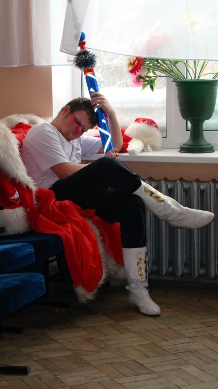 А ни кто ему не даст проспать. В Новогоднюю ночь он работает у нас!