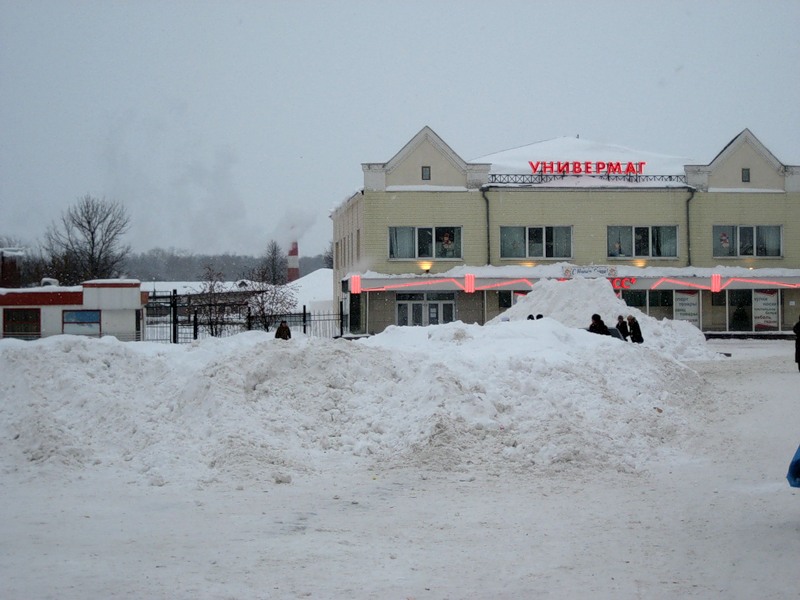 Только что оттуда - все стоит глухо... а почему никому в голову не придет из этого снега сделать горки нормальные на площади. Они бы простояли до самой Масленицы.