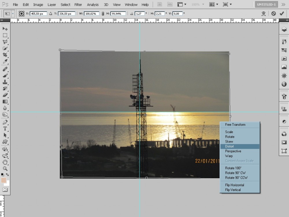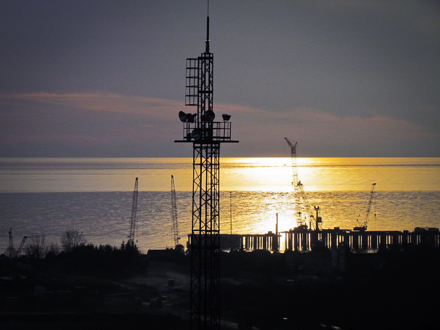 У меня практический вопрос к фото-профи. Как на этой фотографии правильно вытянуть горизонт? Тупым поворотом фотографии заваливается вышка (вертикаль).