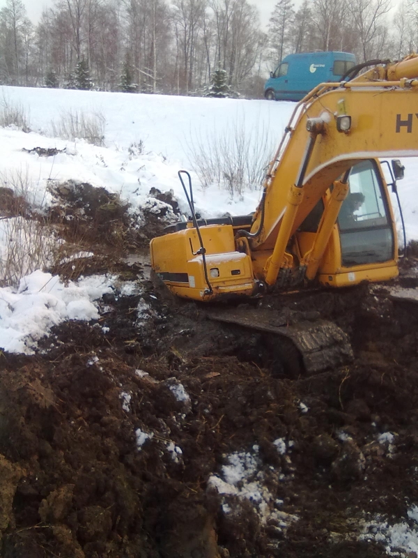 Ещё больше выложишь, если кабель не проложишь. Теперь придётся маленьким экскаватором копошиться. Летом, чтоб люди в воде не замерзали. А крокодила вытянули без потерь. Правда,грязь потом замёрзла в трансмиссии, паром отогревали.