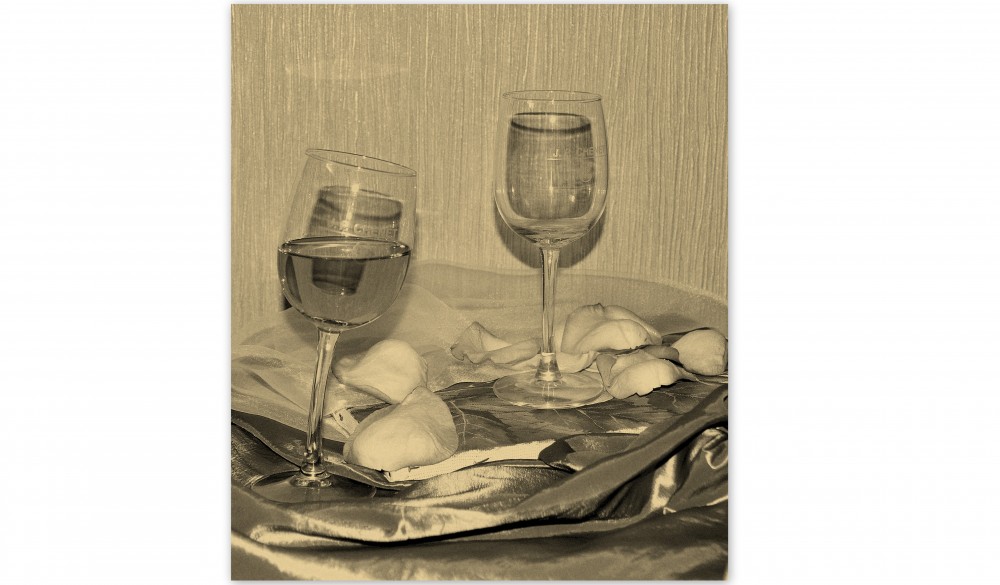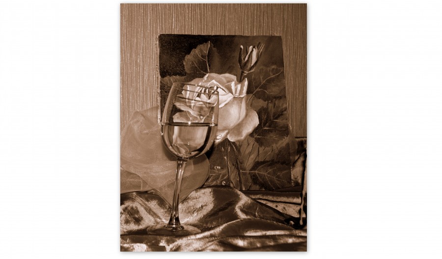 Да нужна ли ему голова, когда сердце уже отдано. Не, вино тут не причём. Я вот такое вижу: некто даже сняв фату со своей жены, склонился к той, что осталась за рамкой жизни и пьян от любви и от того, что и она тянется через преграду.