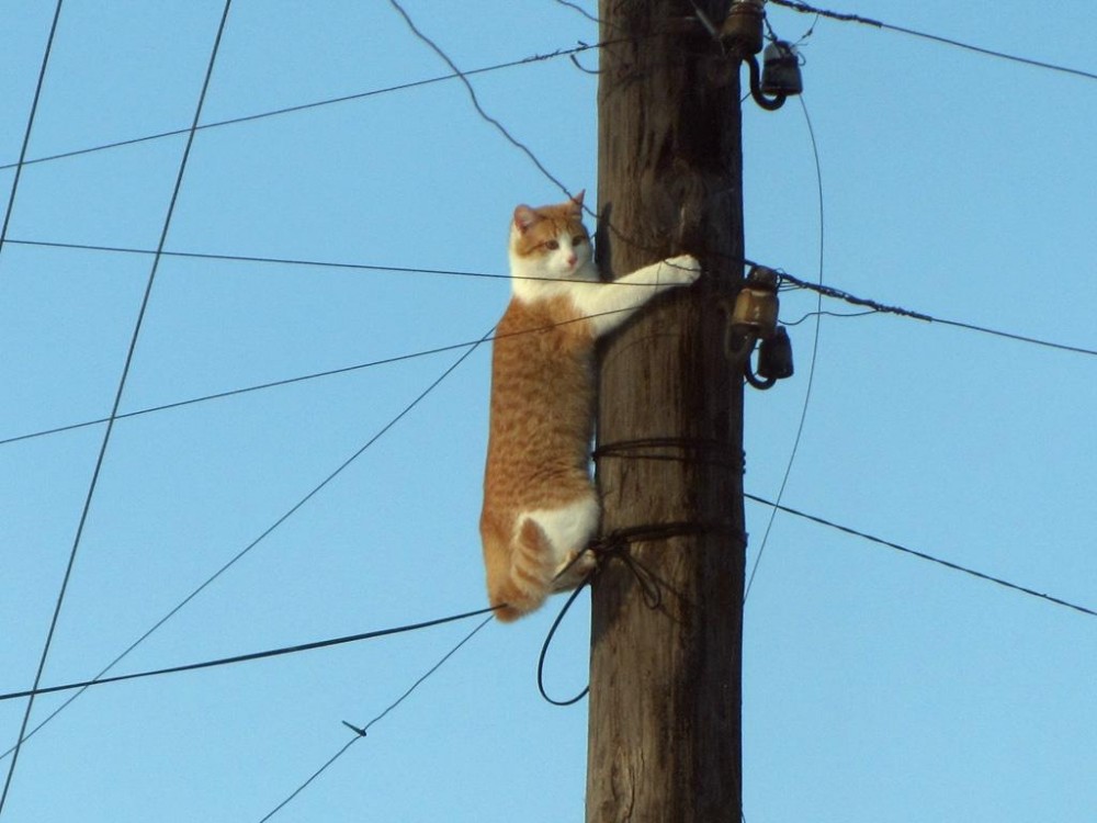 Загнал его туда другой кот, сам слез, а этот минут 10 сидел, осматривался
