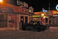 Странно, следы от тазика уже снегом засыпаны, а на крыше и багажнике ни снежинки.